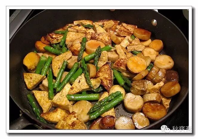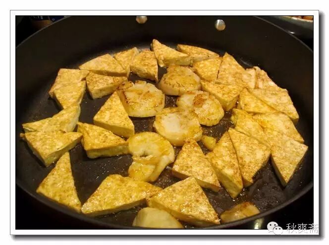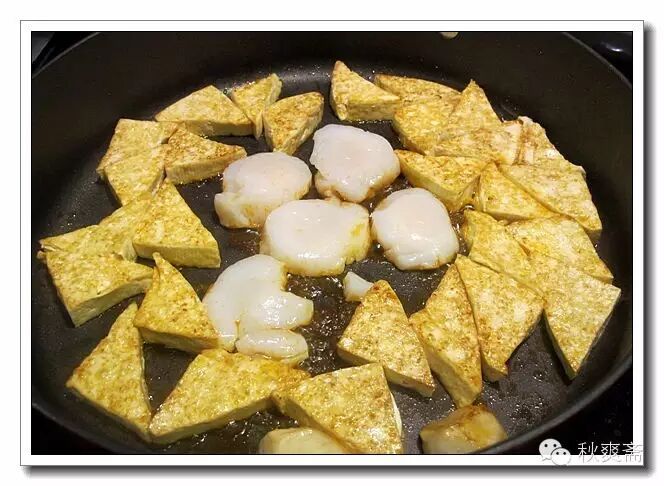 不能吃辣的朋友可以用普通菜油煎豆腐杏鲍菇和扇贝,然后加酱油糖红烧一下豆腐杏鲍菇,汁快收干时加入煎好的扇贝翻炒均匀就可以出锅了~~~很大的一盘,请客时最先扫光: