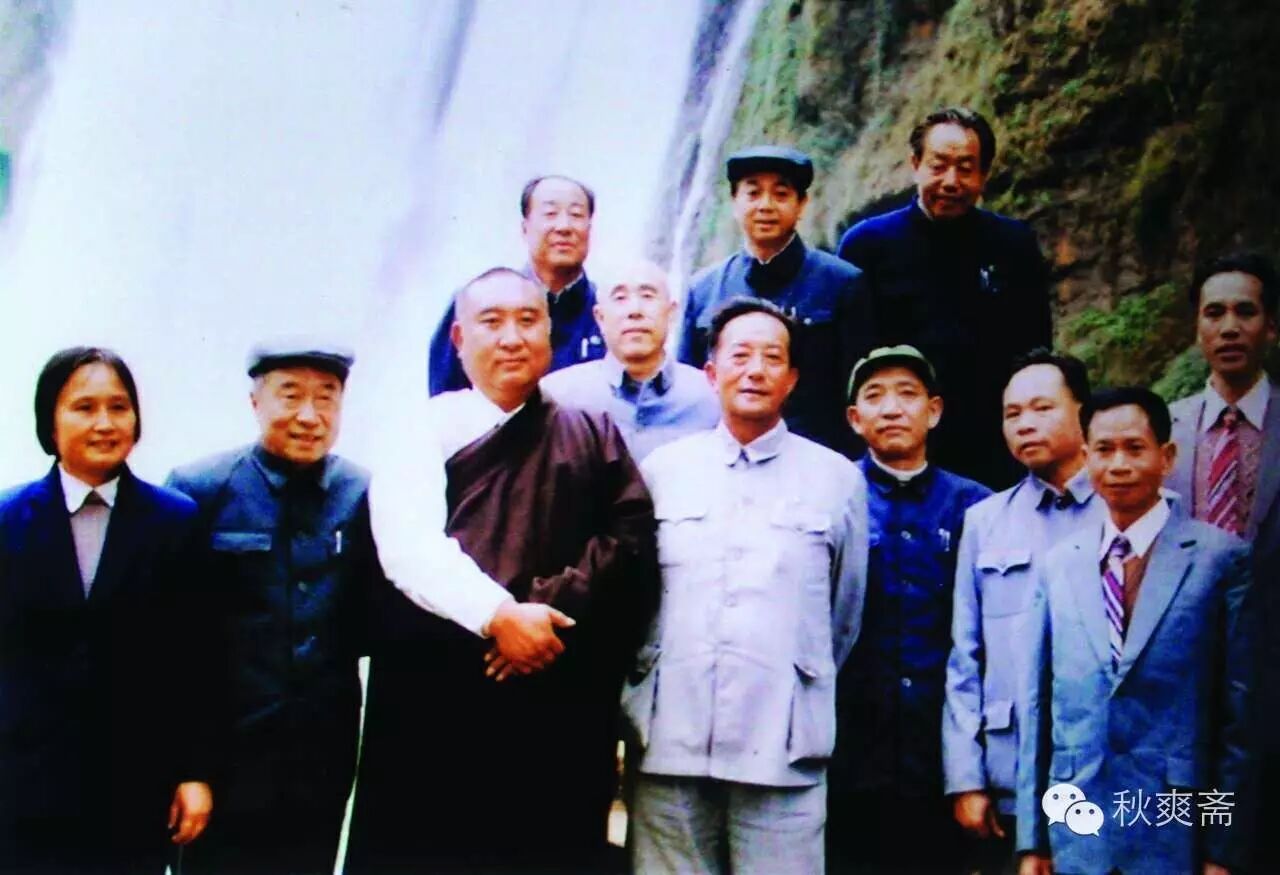 (班禅和省市县领导合影于大瀑布、后排载帽者为作者)