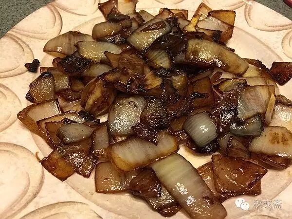 就着铁锅里的油,儿子又煎了洋葱~~~煎得软软的,喷点醋,好吃!