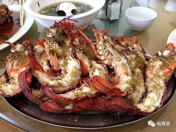 旅行团的终点站也是基督城,顺便晒晒最后一顿饭的龙虾吧~~~中式做法,一人半只: