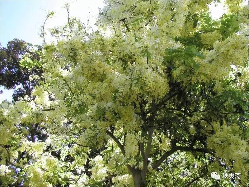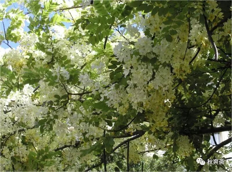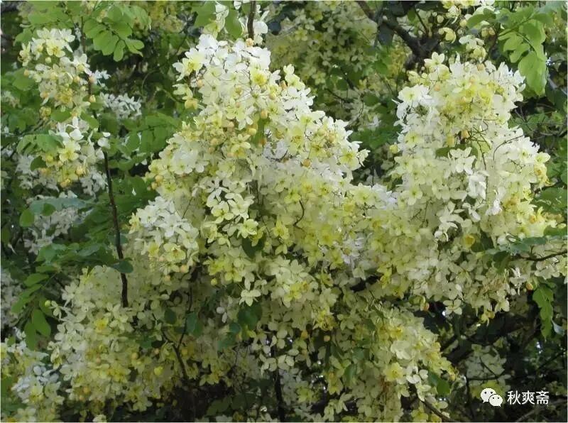 雨花树叶羽婆娑, 色翡翠而光和润,恍然飘然,如凌风御气。其花如豆蔻,瓒若葡萄, 累累坠坠,若不胜重,然沉稳端凝,乘风起伏,举重若轻,何仪态之万方。花色有粉红黄白诸单色,更有兼色者。诸色皆美,而余独爱其黄白者,曰皇后医院白,因初见于皇后医院而得名。其花甚洁甚众而不烦目,光华内敛,似玉而柔,似雪而和,似云而凝。洁者难众难久,玉坚易碎,雪洁易污,云清易散。皇后医院白独兼众美而得免其憾。当其在树,玲珑纷纭,美而不炫,和而不扰。时至而离,略无留恋,飞散若霰,同而不牵。待其及地,散聚随时,顺风不扬,沾泥不损。柔白不坏,化易不滞,其如赤子乎?不洁其洁而洁,不美其美而美,不胜其胜而胜,不和其和而和,不久其久而久。其花之得道者欤?