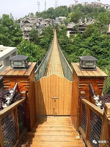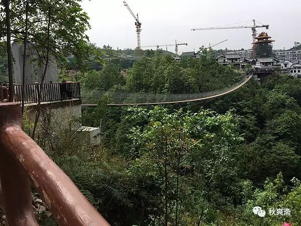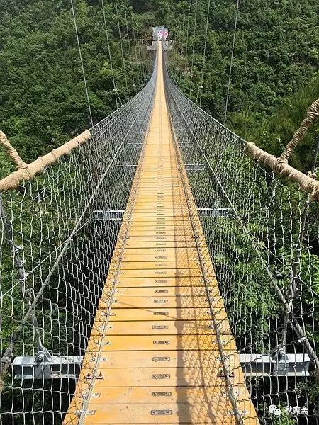 走完玻璃栈道,不远处就是吊桥的入口: