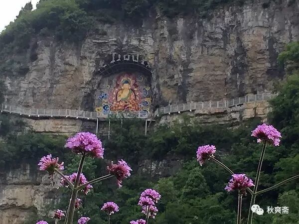 栈道快结束的石壁上有一个药师佛的壁画。据说来这里可以祈求身体健康,家人平安: