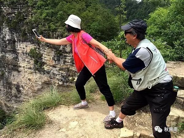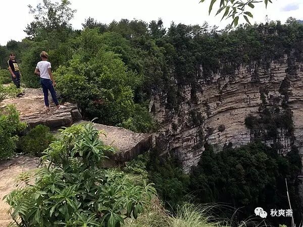那块翘出去的石板,我们虽然胆儿够肥,也还是不敢站上去。此时来了两个年轻人,我赶紧拿好手机瞄准~~~他们最后也没敢走过去![]()