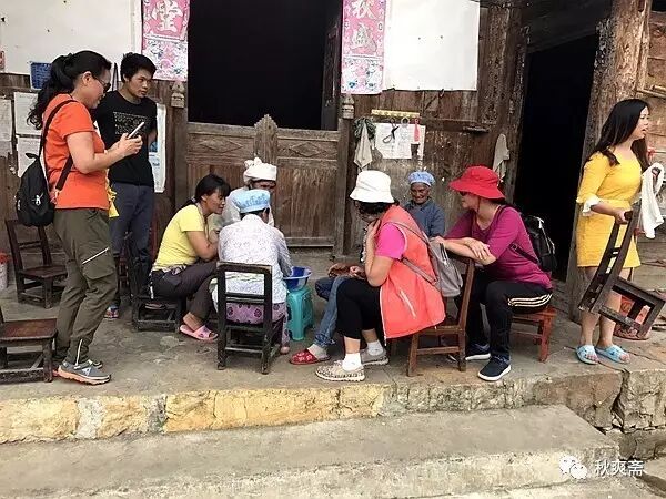村里的女人们在玩骰子,热情地搬凳子让我们坐。说农闲无聊玩点小钱钱:)