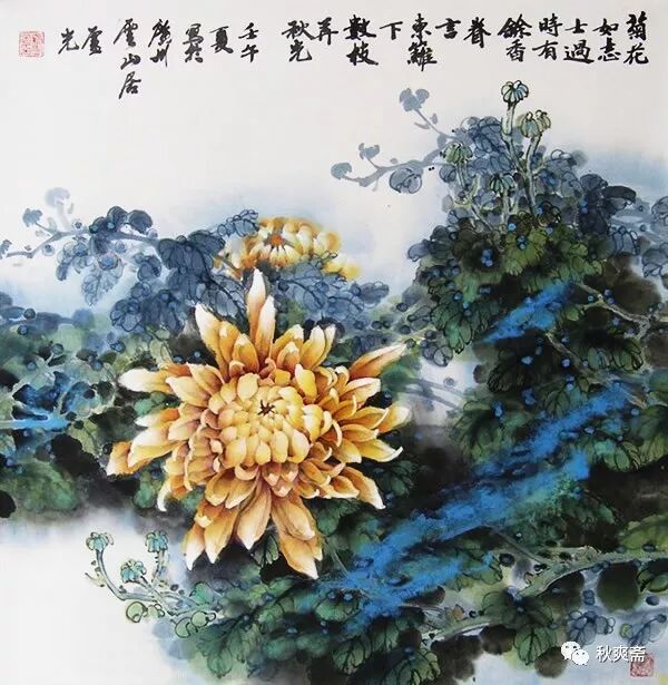 下片自然转到了菊,“冰姿霜缕露蕊”,以冰、霜、