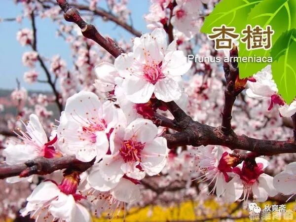 杏花蓓蕾初开时为纯红,后逐渐转成微红带白,落的时候全白。
