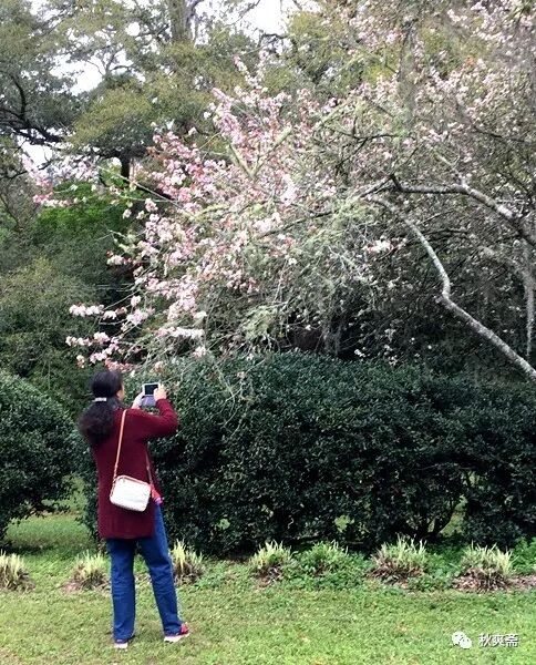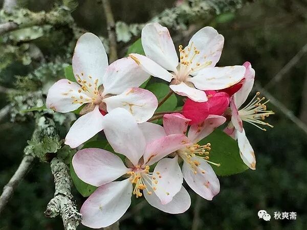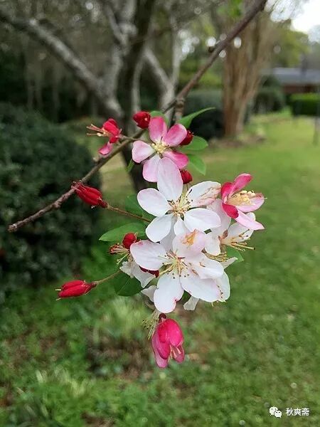 停车场的一树海棠开得正好: