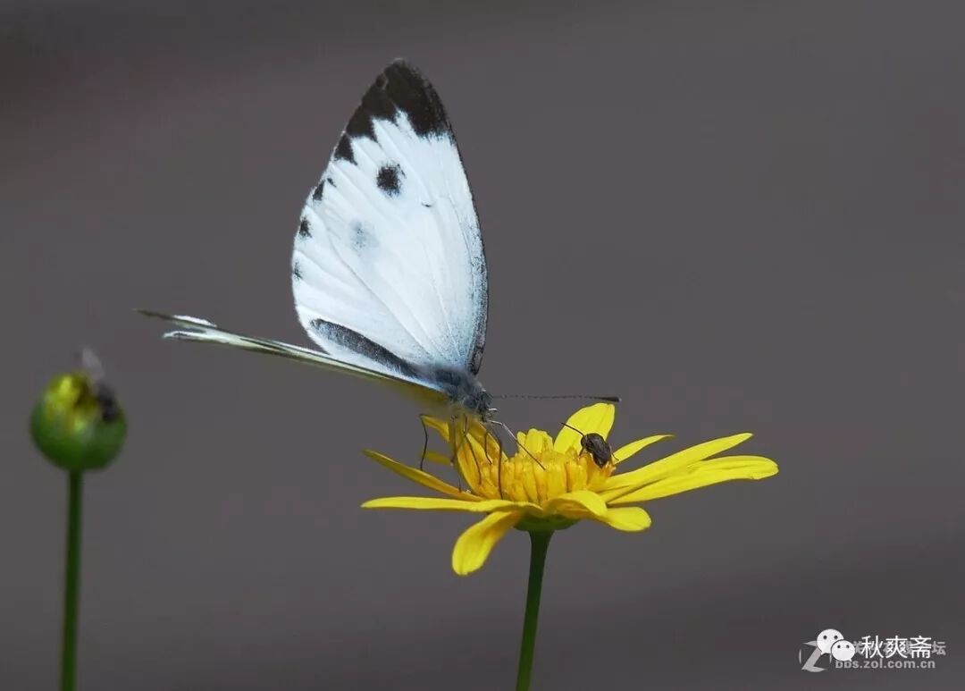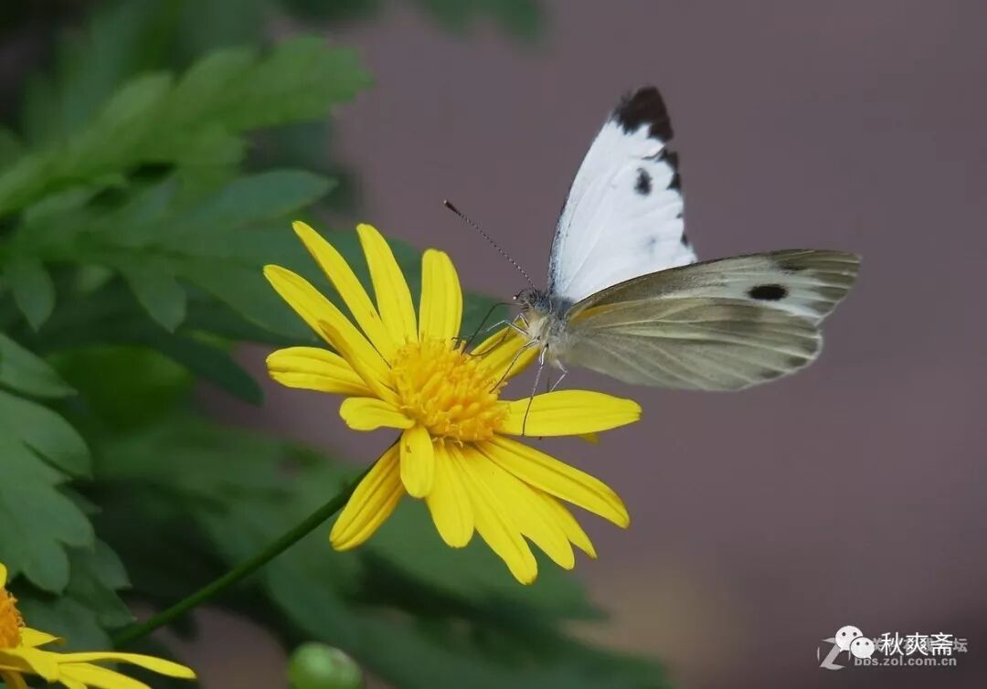 碎黄花在阳光下尽情地绽放,白蝴蝶也不离不弃,命运注定了它们相依相伴。