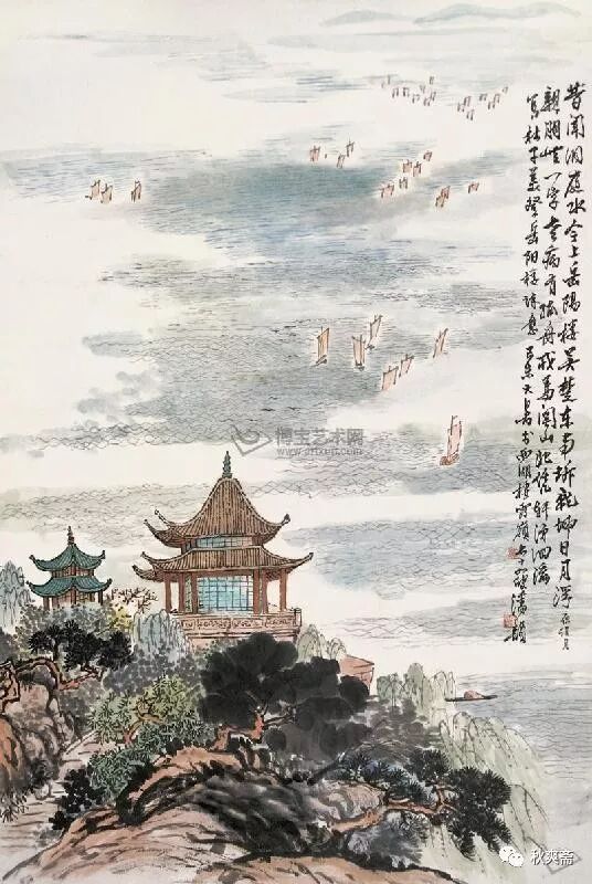 象岳阳楼这样历史悠久的名胜,相信每个人登临都会有一番感慨的。第一句水天相连的大气,不光是眼底景色(‘碧’字包裹了所有细节),作者读者心湖也已经‘波起’了。自然而然的,历史故事和着千年之风,扑面而来。‘风波’引出的思索,令人遐想,回味~~~