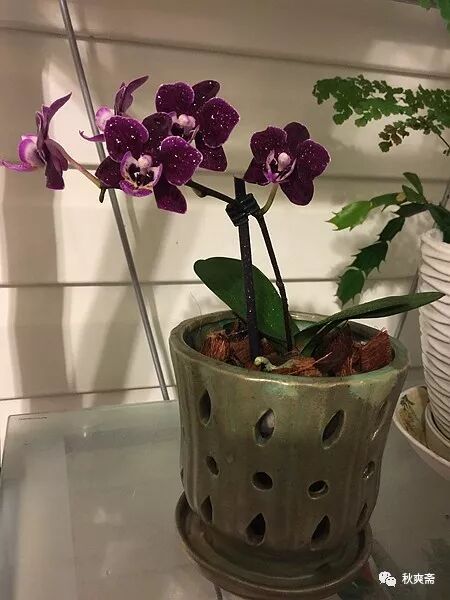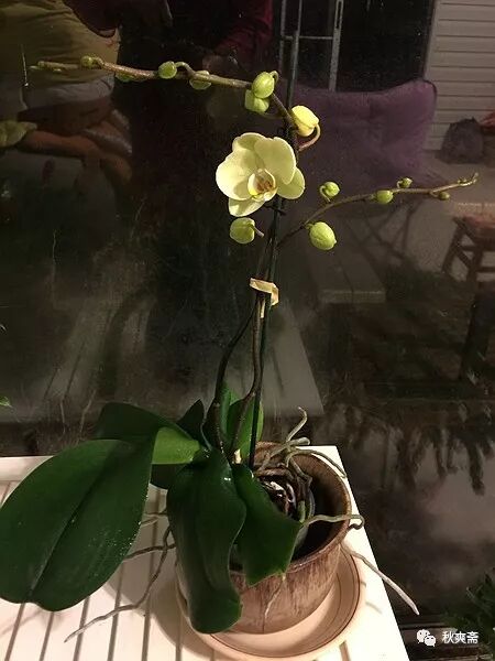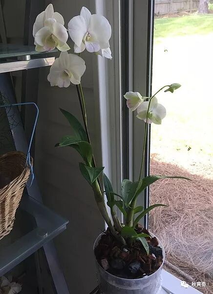还有一枝苗没拍~~~兰花不太好养,所以我很少买。这是前年在Walmart买的开败了的一盆蝴蝶兰,没怎么管反而长得挺好,今年第二次复花,还有两枝呢!