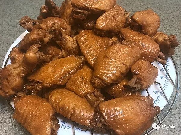 卤了牛腱(在上面的拼盘里),还有一堆鸡翅: