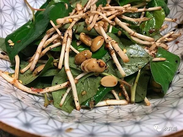 叶子加点贵州的柴火辣椒面,自己做的水豆豉凉拌:)