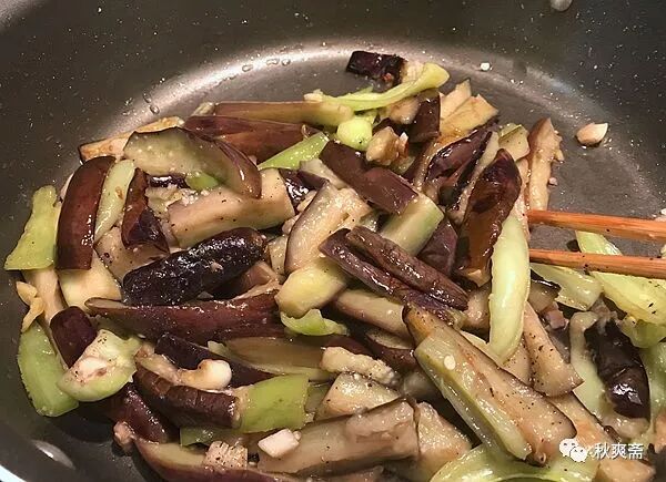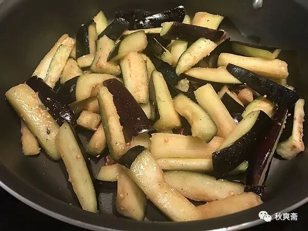 用盐和菜油腌过几分钟再下锅,就不用再加油了~~~感觉这种做法最能体现茄子的本味(详细做法请看《豇豆炒茄子》那一篇:)