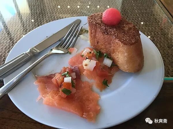 午餐基本都去自助餐厅,一是方便快捷,二是好吃的东西也不少,三是没有dress codes,游泳衣外面套个大长褂子,穿拖鞋就可以进去:)