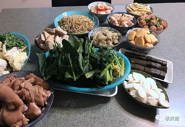 买也好自己做也好,火锅酱搞定。到日子先用猪骨,猪蹄,咸肉,干贝熬一大锅汤备用(或者炖锅鸡汤也行)~~~熬好自己先来一碗(熬汤的心得以前分享过:)