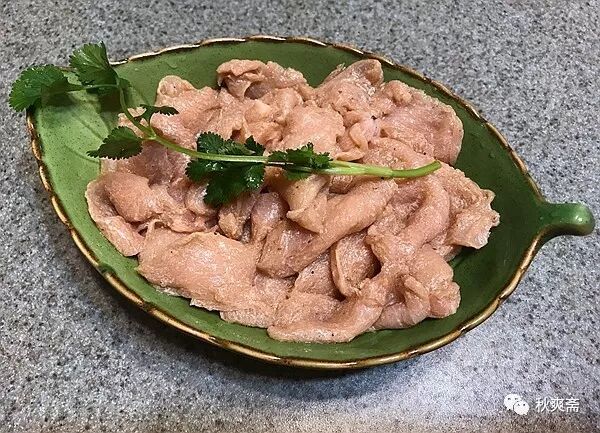 鸡胸脯肉切片,用点淀粉,盐,胡椒粉拌拌再涮更滑嫩:)