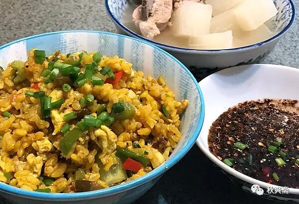 有时候偷懒,就收罗点蔬菜熟肉之类,把剩饭炒一炒,又是一餐~~~不过不敢经常炒,因为一不小心就会吃多了:)