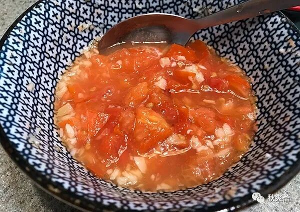 屯的番茄还剩最后一个,用微波炉叮一下,加点蒜: