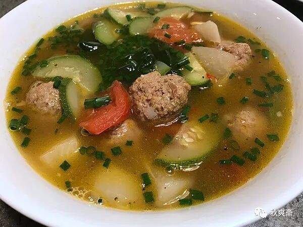 这碗丸子萝卜丝汤也是这么做的~~~在家上班,午饭除了俩菜,还可以多一碗汤了:)