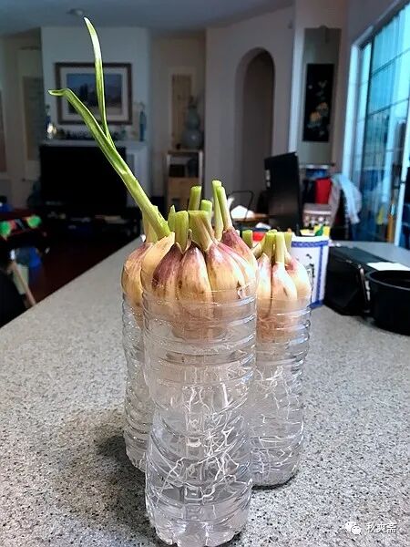 美食群里看见一个用矿泉水瓶种蒜的视频,转给老爷看了,马上学起来:)