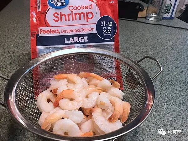 屯的促销冻虾,解冻洗过擦干水分~~~最好用厨纸包着捏几下,这种煮过的虾水分很多: