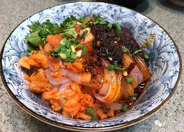 现制了‘山菊牌’油辣椒;自己做的辣白菜切碎充当酸菜;香葱香菜都是花盆里的:)