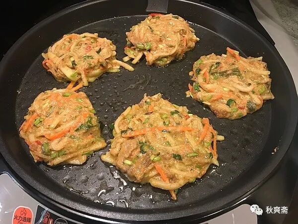 中小火慢慢煎,差不多了用筷子翻面煎另一面:
