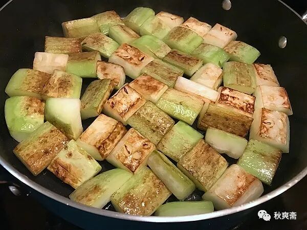 煎完饼,看见还油油的,就把那个没长好的瓠瓜切滚刀块,放进去煎:)