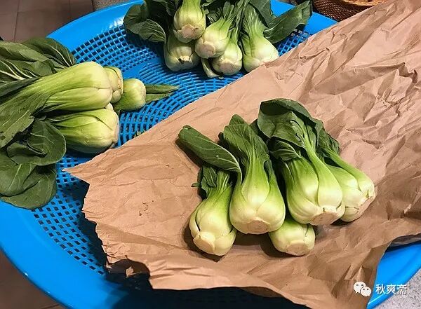 网购包装盒里的这些纸可以留着,这是朋友团来的青菜,先摊开晾干表面的水,分成几份包起来: