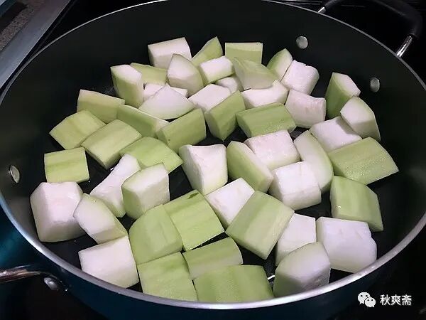 自己种的这瓜比买的大很多,切片得炒好几顿,还是红烧吧~~~切大块,不沾锅放点油,不用等锅热就可以下食材,这样可以保护不沾锅涂层:
