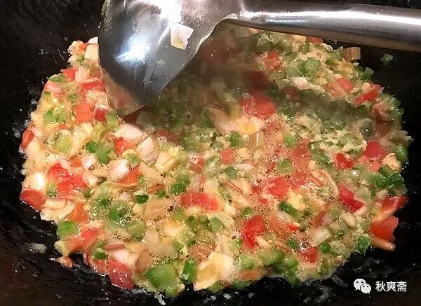 下点油先煸炒苦瓜碎,加点糖中和一下苦味: