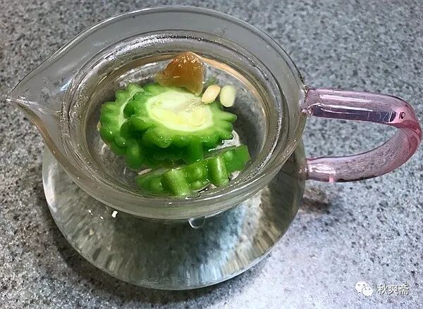 切下来的头尾泡苦瓜茶,加了一片姜糖: