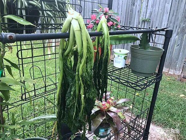 咸菜是春天种在火龙果盆里这几棵大芥菜做的:)