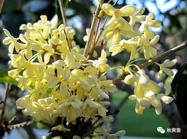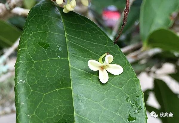 这种洋桂花香味不是很浓,要凑近闻。有时候早上一开门会有浓香扑面而来:
