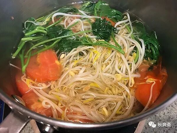 再摘点红薯叶西红柿,煮个清淡的蔬菜汤:)