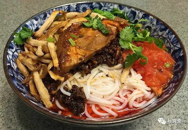 米粉也一样~~~配菜还有剩的猪蹄,素鸡丝和牛肉酱:)