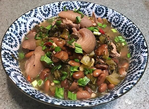 炒菜锅少放点油,先炒香姜片,喜欢辣的可以呛几个干辣椒(不要放辣豆瓣之类太抢味的),下酸菜加一点糖和盐,炒一分钟左右,倒入酸汤,再添加适量的肉汤;猪蹄改刀和芸豆一起加进去,煮两分钟左右调味出锅~~~除了调咸淡,还有加点其它的酸味源:各种醋,柠檬都可以,这样可以增加酸味的层次,吃起来回味无穷~~~最后别忘了撒上蒜叶或香葱香葱:)