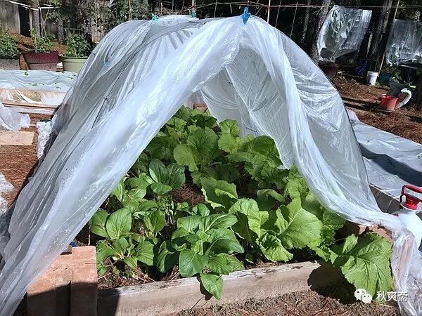 上周有两天我们这里也降温到0°以下了,用塑料布盖了一下~~~现在又是阳光灿烂啦:)