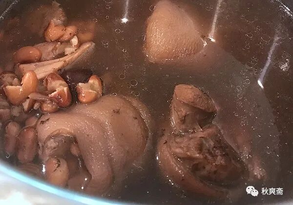 经常买Publix这种,蹄子和蹄膀中间的连接部分,基本没有肥肉。一般炖汤都要先焯水,其实这样做鲜味和营养都损失很大哦~~~以前专门写过如何炖骨头汤,感兴趣的厨友可到后面找链接。这是浮沫撇干净后的样子:)