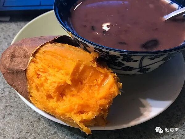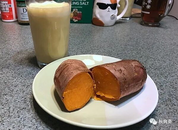 玉米汁配红薯(后面有微波炉空气炸锅烤红薯链接:)