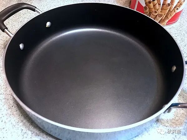 秀下我的不沾锅,Costco买的,30刀左右吧~~~去年感恩节后开始用,不觉一年多了呢。虽然不是天天用,使用频率也不算低。注意不要大火烧空锅,搅拌用筷子木铲或硅胶铲。我家一个不沾锅用好几年的(铁锅就更久了:),上一个用了两年还好好的,去年带去奥兰多度假忘在民宿厨房里了:)