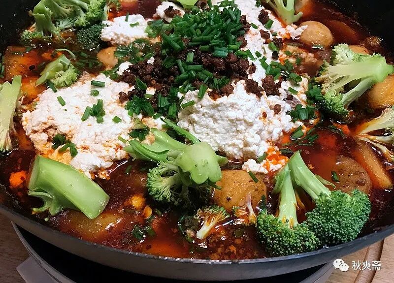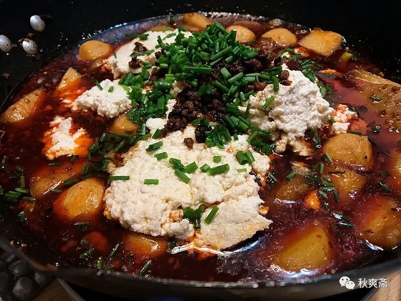 肉末炒好加火锅料,舀一勺出来再加水煮~~~那一勺放在豆花上面。里面还煮了冬瓜,土豆等: