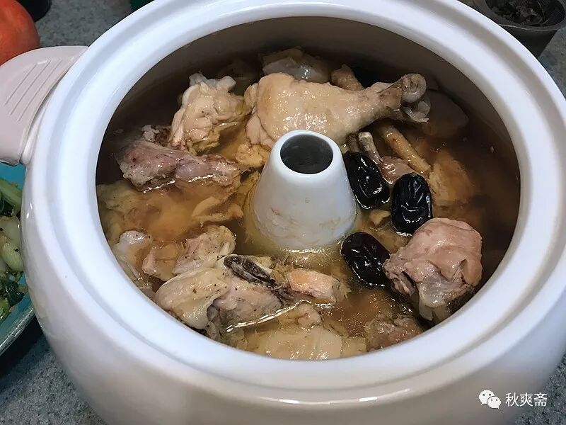 做法并不复杂,关键是这个特别的锅难得~~~蒸汽从中间的孔源源不断的涌上来,最后凝结成汤:)