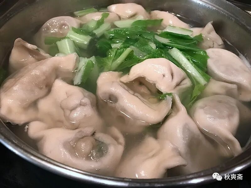 冬至吃的饺子,韭菜馅~~~掐了几片菜叶一起煮:)