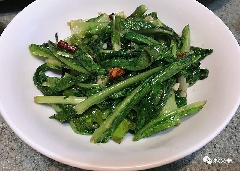 剥下来的莴笋叶子,蒜末清炒~~~只有这个和扣肉是光盘的:)