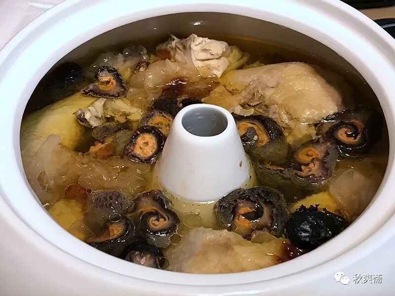 这次设置了四个半小时。还剩40分钟时加了一些泡发好的海参~~~第一次泡海参,油管上找几个视频参考,还真是够麻烦的:)
