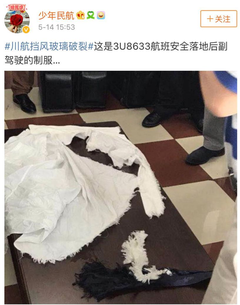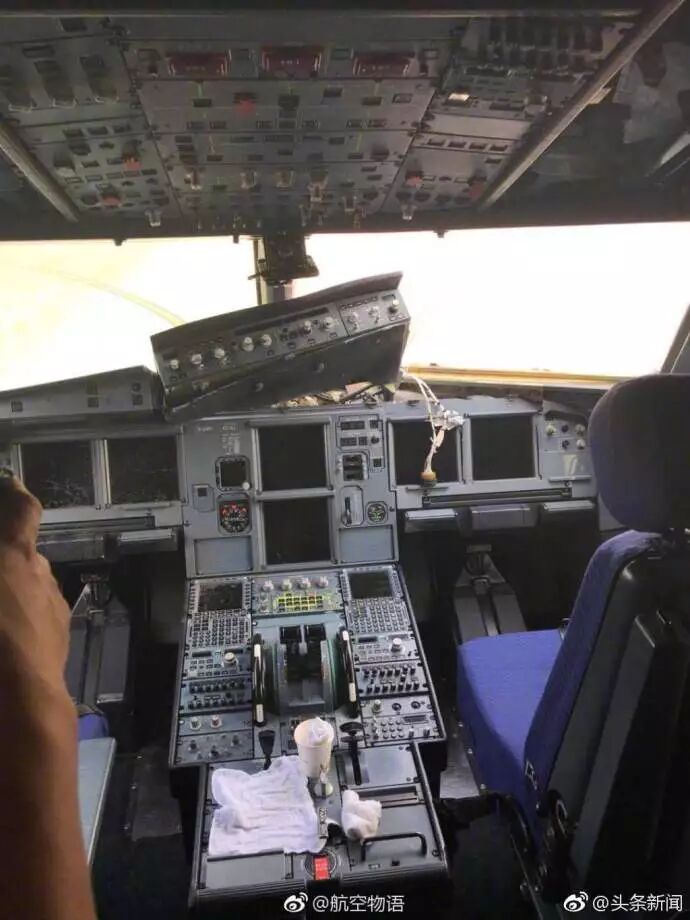 飞机副驾驶一侧的挡风玻璃突然爆碎