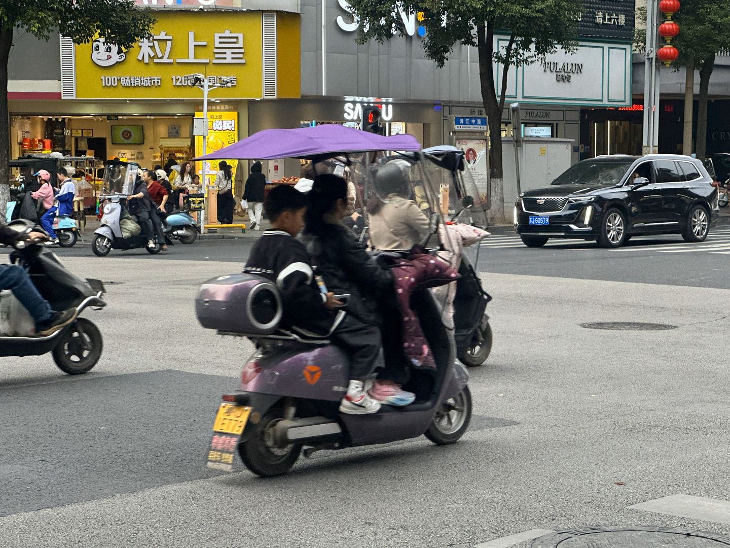 街头的电瓶车。