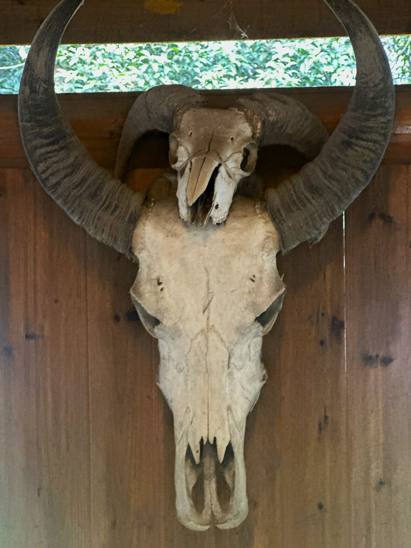 墙壁上的牛头骨。